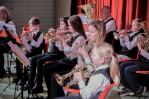 We also run a Beginners’ Group and a Development Band which rehearse on Friday evenings during school term-time, and we also offer very affordable 1-to-1 tuition. We can’t promise to teach you to play a brass instrument from scratch, but we’ll give you every encouragement to learn. If you don’t read music, that’s no problem; we’ll teach you to do that too.